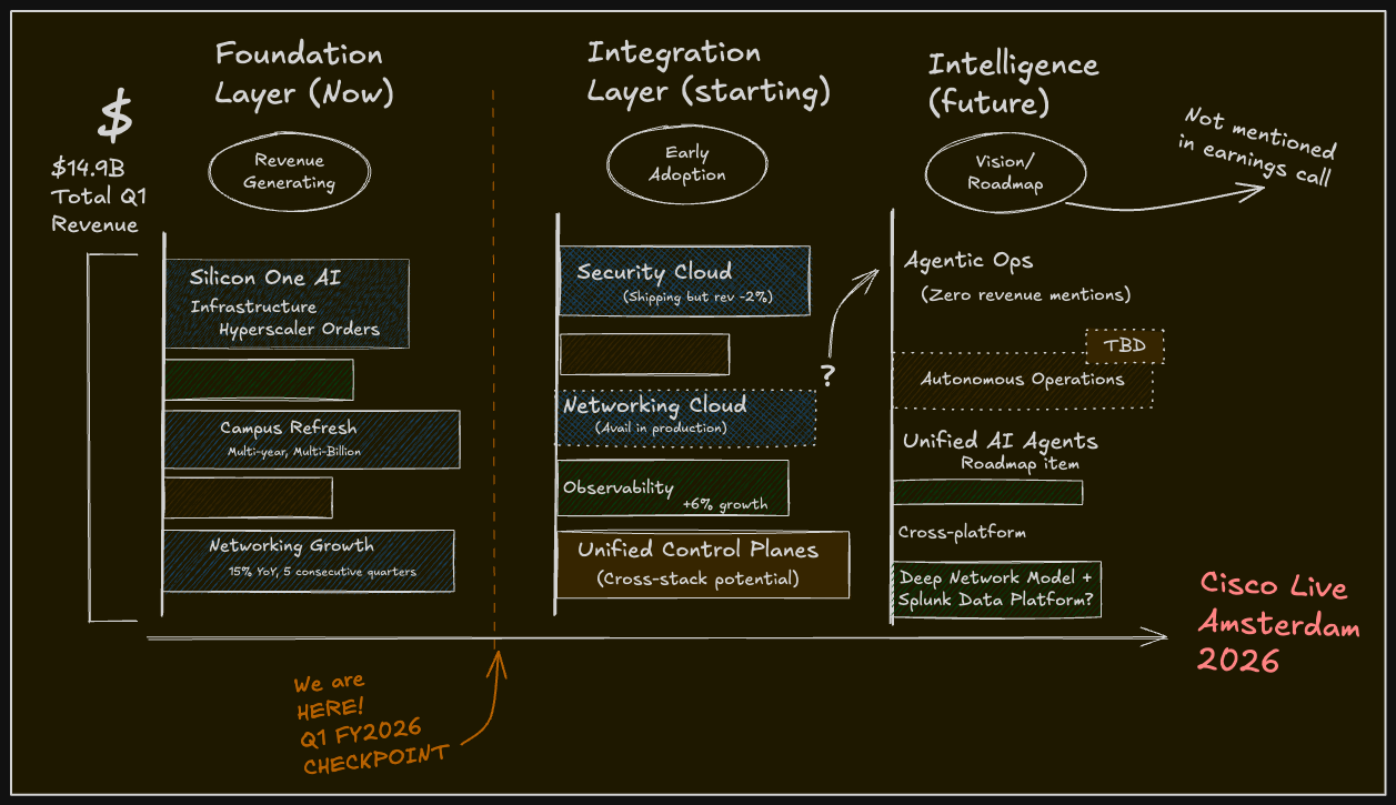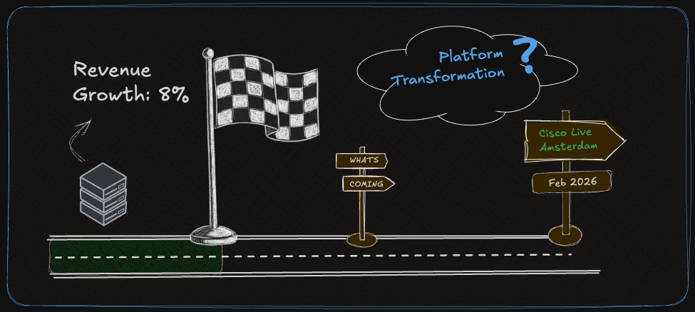 Cisco dropped their Q1 FY2026 earnings yesterday, and if you've been following along with this "Building Toward Amsterdam" series, you're probably wondering the same thing I am: how much of the transformation story we've been building is actually happening right now, versus how much is still beautifully rendered roadmap?